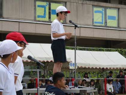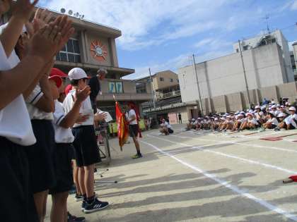 6年生のすばらしい組体操が終わり,閉会式を行いました。