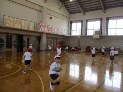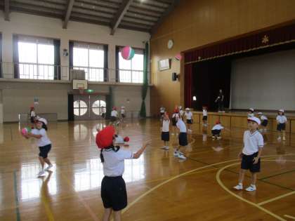 一人でボールを上に投げてみたり,二人で転がしたりしました。