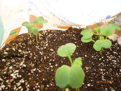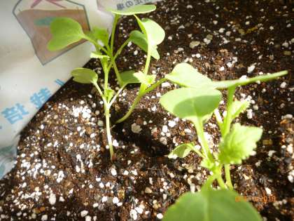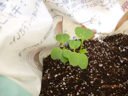 一人一袋の野菜袋で育てている「大根」の芽が少しずつ大きくなってきました。来週には間引きをする予定です。