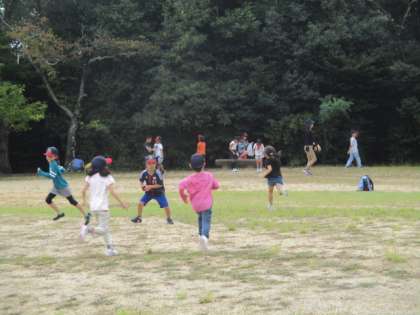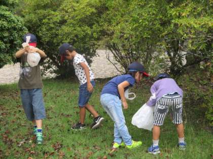嵐山の亀山公園では,待ちに待ったお弁当の時間です。食べた後は,くりやどんぐりを拾ったり,虫を見つけたり,鬼ごっこをしたりして,思い思いに楽しみました。