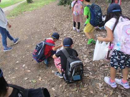 葉の色がだんだん移り変わる様子をみて「黄色になりそう!」など言っている子もいました。
