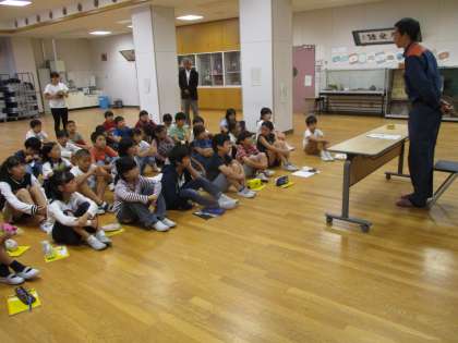 消防署の方に来校していただき,子どもたちの質問に答えていいただきまいした。消防署や消防士さんの仕事のヒミツや工夫,仕組み等について新たに学ぶ機会になりました。