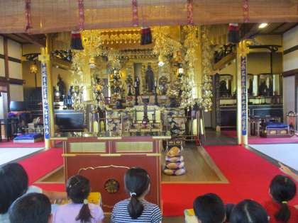 総合の学習では,光徳のまちの“すてき”を探っています。この日は,校区にある中堂寺に寄せていただき,お話をうかがいました。初めて知ったことも多く,子どもたちは興味津々な様子でお話を聞いたり,積極的に質問したりしていました。