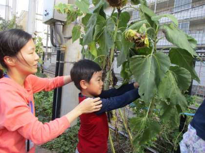みんなで育てたひまわりも枯れてきて,種ができてきました。