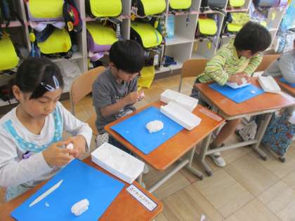 そして最後には「いただきます!」と言ってからねんどの片づけをしました。