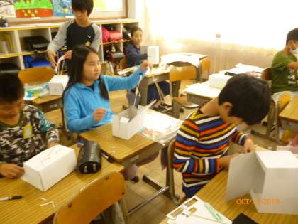 クランクを使った工作を作り始めました。仕組みを理解しながら,作っています。