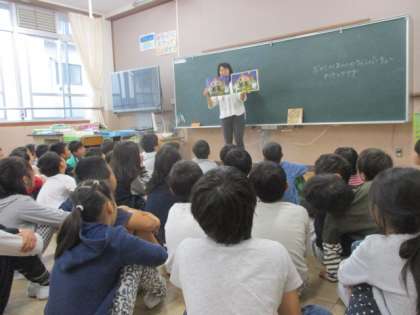 わぁのなかまのみなさんによる読み聞かせがありました。ハロウィンにちなんで,紙芝居と絵本を読んでいただきました。みんなとても楽しんで聞いていました。