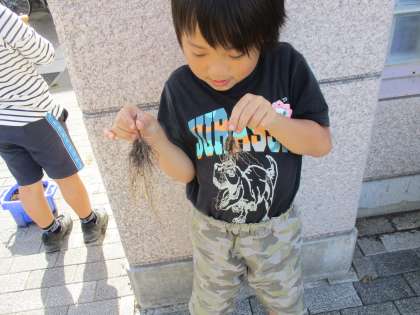 今日は,あさがおで使った鉢の土をきれいにしました。
