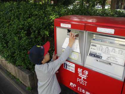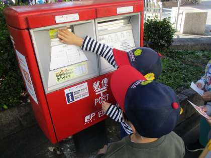 遠足で見つけた,どんぐりやまつぼっくりなどをもとに,秋を知らせる絵葉書を描きました。