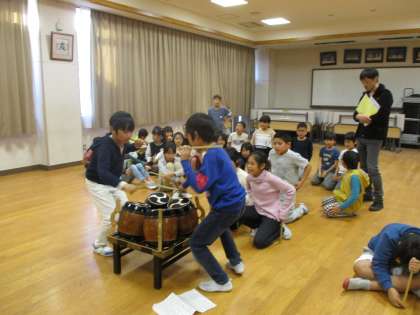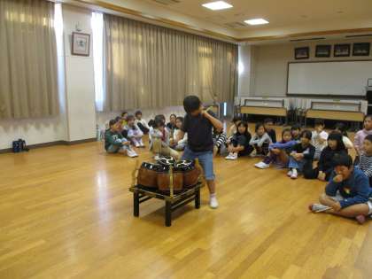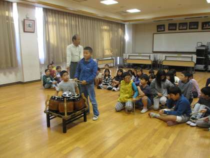 社会見学から帰ってきて六時間目は六斎の演奏の練習をしました。