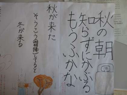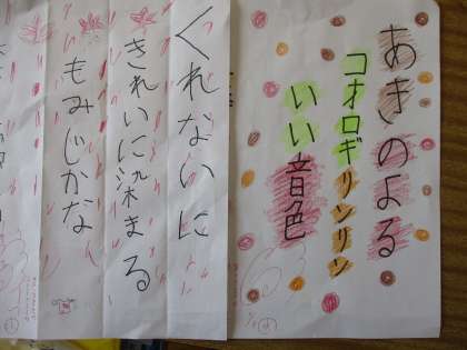 秋の俳句を書きました。子どもたちのユニークな発想はおもしろいなと感心します。