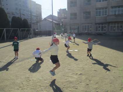 体育科では,なわとびの学習が始まりました。寒い中ですが,子どもたちは「1回,2回!」と元気に回数を数えながらとんでいました。