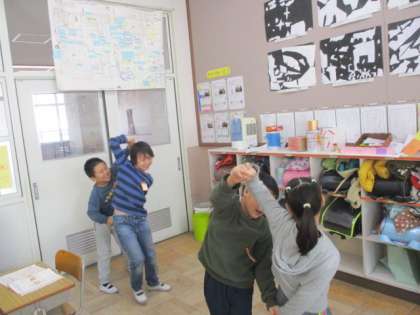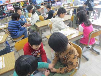 音楽科では,日本のわらべうたを学習しています。「ずいずいずっころばし」や「なべなべそこぬけ」など,歌いながら楽しく遊びました。