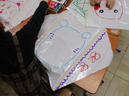 凧を揚げた時によく見えるように,大きく描こうと工夫していました。