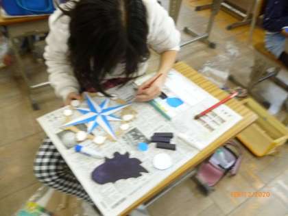 電動のこぎりで板を上手にカットできるようになりました。板をやすりにかけて,絵の具で色を塗っていきます。みんな丁寧に塗っていますね。