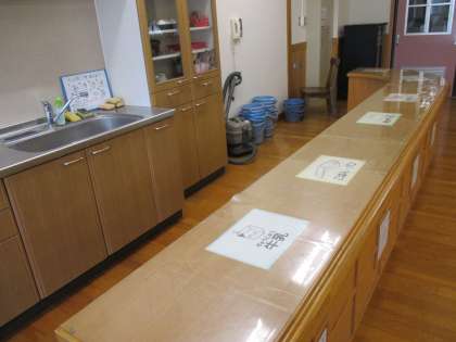 きょうの へやも きょうしつとは ちがう おおきな つくえと いすが ならんでいます。