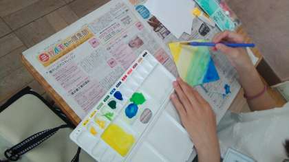 昨日,今日は図工の時間に絵の具を使って,思い思いの模様を描きました。筆の運びや,濃淡を生かした作品になりました。来週は,台紙を作って仕上げます。