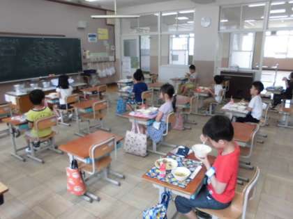 今日は,Bグループの児童が給食再開となりました。心待ちにしていた久しぶりの給食を,「おいしいなぁ。」「もっと食べられる。さけがジューシーでやわらかい。」とうれしい感想を伝えてくれていました。