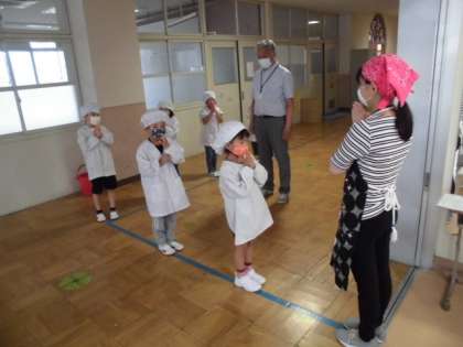 今日の給食は,「黒糖コッペパン・牛乳・じゃがいものクリームシチュー・ひじきのソテー」でした。Aグループの児童が2回目の給食を食べました。ホワイトルーから手作りの給食のシチューは,とろりとなめらかで香りよく,じゃがいもがほくほくとおいしく,好評でした。また,ひじきのソテーには,スチコン(スチームコンベクションオーブン)で蒸したにんじんやミックスビーンズがはいっていて,野菜や豆の甘みを味わって食べることができました。