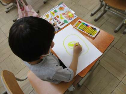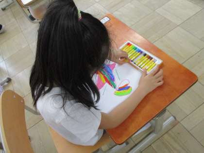 色や形を工夫し,にこにこ笑顔のおひさまが出来上がりました。