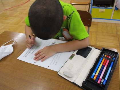 ひかり学級では,ソーシャルスキルあそびを取り入れて道徳の学習をしています。今回は友だちとじゃんけんをしながら,自己紹介を繰り返す活動をしました。「こんにちは。○○です。じゃんけんしてください。」「ぼくは,○○がすきです。」など,元気な声が教室に響きました。ワークシートにふりかえりも書きました。