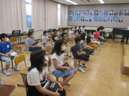 初めての授業は「こいのぼり」の歌詞やリズムについて学習しました。