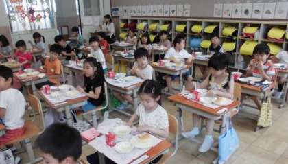 今日の給食は,「コッペパン(国内産小麦100%)・牛乳・ツナサンド(具)・チャウダー」でした。ツナサンドは,教室で各自がコッペパンに具をはさんで食べるセルフサンドです。それぞれに,おいしそうなツナサンドを作り,大きな口をあけてかぶりついていました。