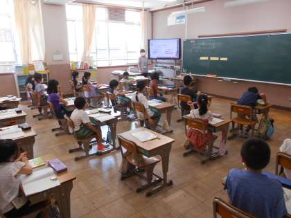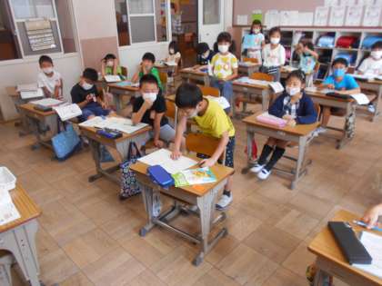 算数では「わり算」の学習を行っています。わり算の方法をみんなで図を使って考えたり,わり算の問題を作ったりしています。一人ひとりしっかりと考えることができました。