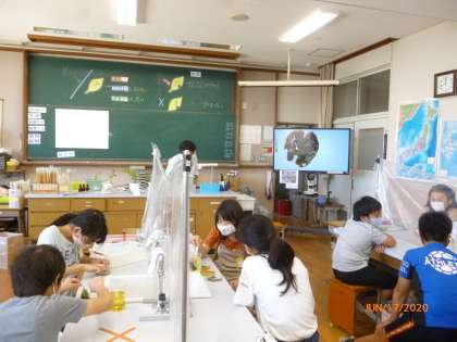 植物が成長するとき,葉の中に栄養(でんぷん)を作ることを,ヨウ素液を使って確かめました。