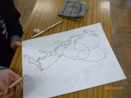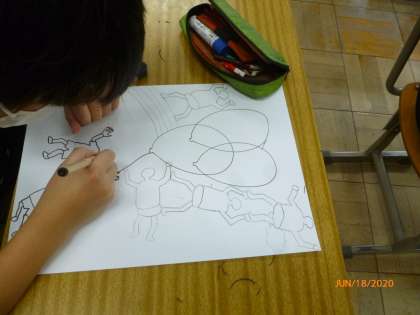 最初は,人物がうまく描けなくて悩んでいた子が多かったけれど,だんだん慣れてきて楽しくなってきました。