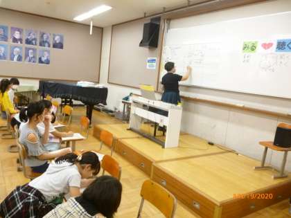 今年度の新しい音楽の先生をお迎えして,授業が始まりました。音楽で大切なことは「聴く」と「みる」だと教えていただきました。その後,「おぼろ月夜」の歌を聴き,イメージしたことをイラストで表現していきました。