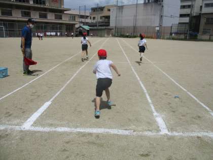 暑い中でしたが,水分補給をしっかりとして最後まで頑張っていました。