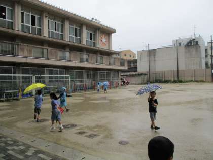 今日の5時間目は,やっと生活科の雨の日たんけんの学習ができました。