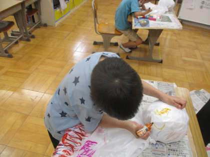 雨が続いています。学級園のトマトや万願寺唐辛子,オクラがどうなっているか気になっています。『はやく晴れてほしいな』という気持ちを込めて,てるてるぼうずを作りました。