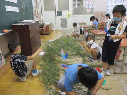 学校長が大きな笹を用意してくれましたので,願い事を書いた短冊を笹につるしました。