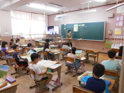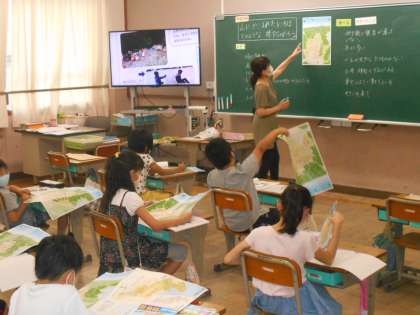 社会科では「京都市の様子」について学習をしています。自分たちの住んでいる京都市について地図を広げて確認をしました。