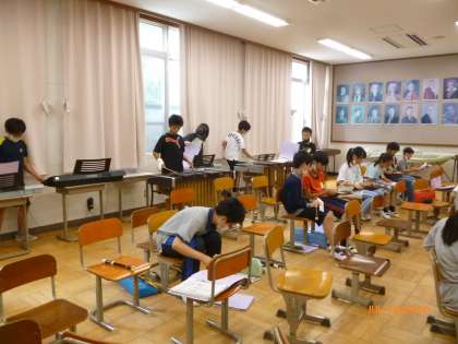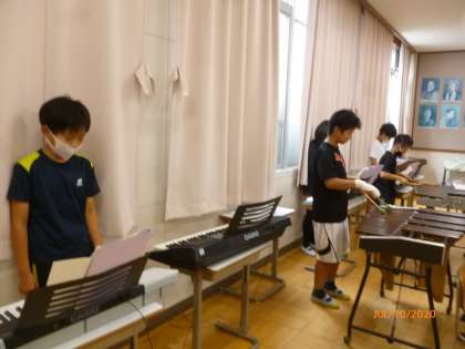 今日から合奏が始まりました。木琴やキーボード,鍵盤ハーモニカ,リコーダーの音色が響いていました。