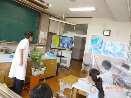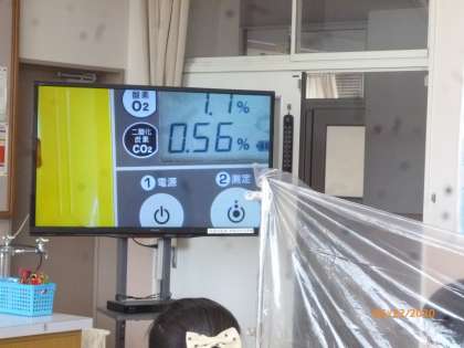 理科の学習で,植物が二酸化炭素を出したり取り入れたりしていることを,調べました。二酸化炭素の濃度から,その様子がうかがえました。