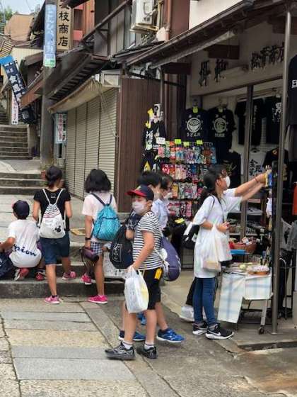 おみやげを選んでいます。お店の人から「どこから来たの?」と尋ねられ、京都からですと丁寧に答えていました。頼もしく感じました。