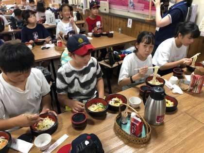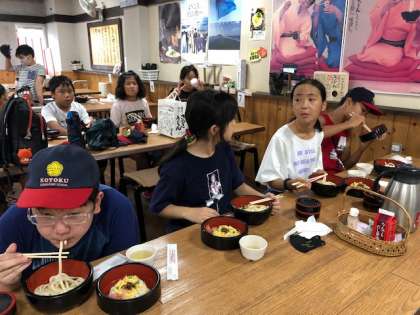 6年 修学旅行 2日目 昼食はさぬきうどん 9月4日