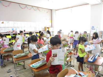 音楽科の学習では,歌ったり,鍵盤ハーモニカの練習をしたりしています。
