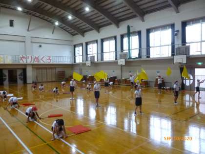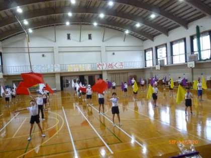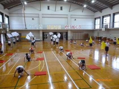 「フラッグ」が届きました。今日は,それを使って音楽に合わせて振ってみました。色ごとに動きがずれていく場面もあり,見ごたえがあって,仕上がりが楽しみです。