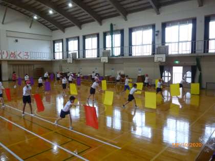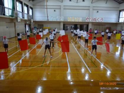 思ったより旗の振り方が難しくて,悪戦苦闘の子もいました。でも,みんな楽しそうでしたね。
