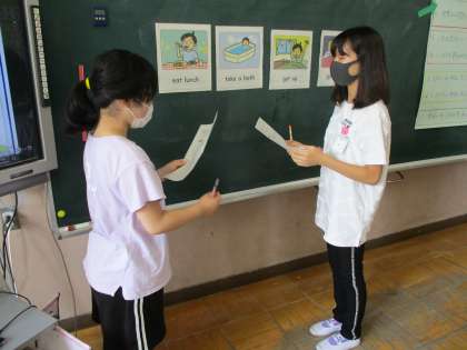 What time do you〜?の使い方にも慣れ,進んで質問ができていました。