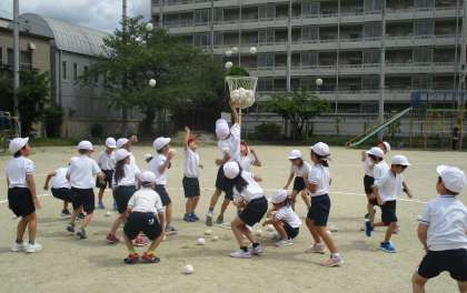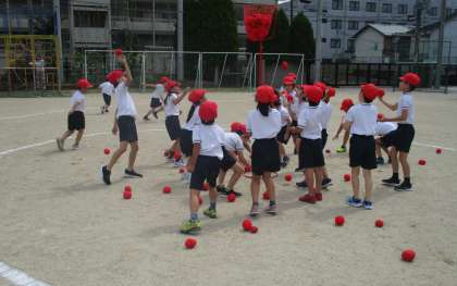 今日は,赤白組の並び方練習をした後,玉入れの練習をしました。
