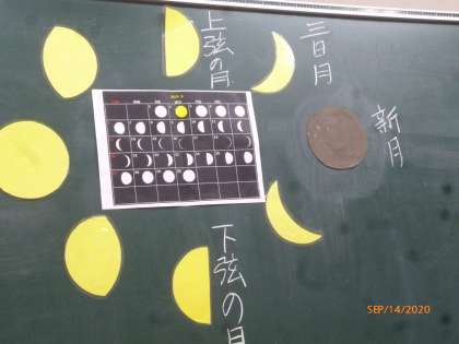 理科では,月の動きを学習しています。新月や上弦の月などが出てきました。