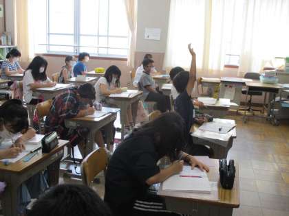 話を聞いて一生懸命ノートをとっています。
