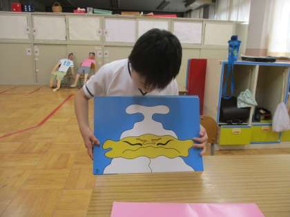3年4年合同の体育を楽しみにしていて,体操服に着替えるのも,いつも以上にはやくできました。授業が始まるまで,紙芝居や本を読んですごしました。合同の体育では,つなひきの練習をしました。運動会当日,力いっぱい頑張る姿が楽しみです。