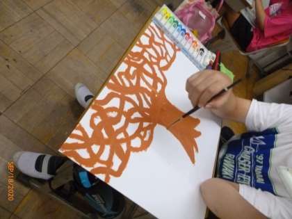 木の幹や枝の広がりも下絵を描かず,筆で作っていきました。