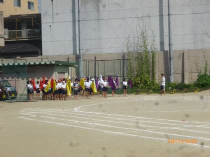 連休明けですが,今日も運動場での体育をがんばりました。入場からすべて通して練習しました。